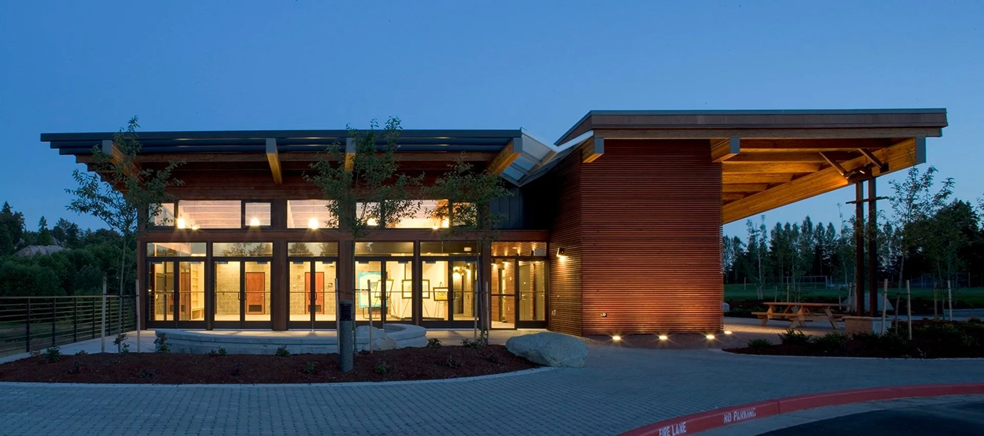 BELLEVUE, WA - This 50 acre wetlands park hosts wildlife, miles of boardwalks, a soccer field, baseball fields, a basketball court & a visitor’s center. The visitor center building speaks of water and the pooling of ideas and is designed as a physical interpretation of how water gathers and forms a wetland and then a stream. It is a simple 5000 square foot structure employing straight forward materials. Sustainable features include a green roof, reclaimed redwood, extensive daylighting, natural ventilation as well as flexible multi-purpose spaces that can be configured in a variety of ways.