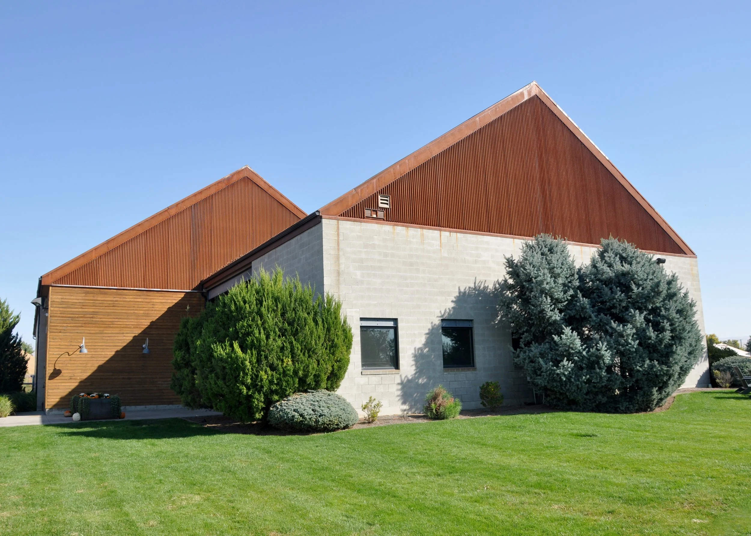 WALLA WALLA, WA - Canvasback Winery (formerly Waters Winery) is clad in masonry and rusted corrugated steel panels, with a steeply pitched roof, exposed wood and steel trusses and 16 foot walls. Views of grassy fields and the Blue Mountains in the distance complement the barn-like design. With sustainability in mind, a large skylight in the barrel and fermentation areas creates day-lit working spaces, reducing the use of electricity. Barrel rooms requiring constant temperature levels are contained in masonry walls and placed on the north side of the building, where temperature changes will be kept to a minimum. This design saves energy with day-lighting, reduces the need for heating and cooling, and minimizes evaporation of wine from the barrels.